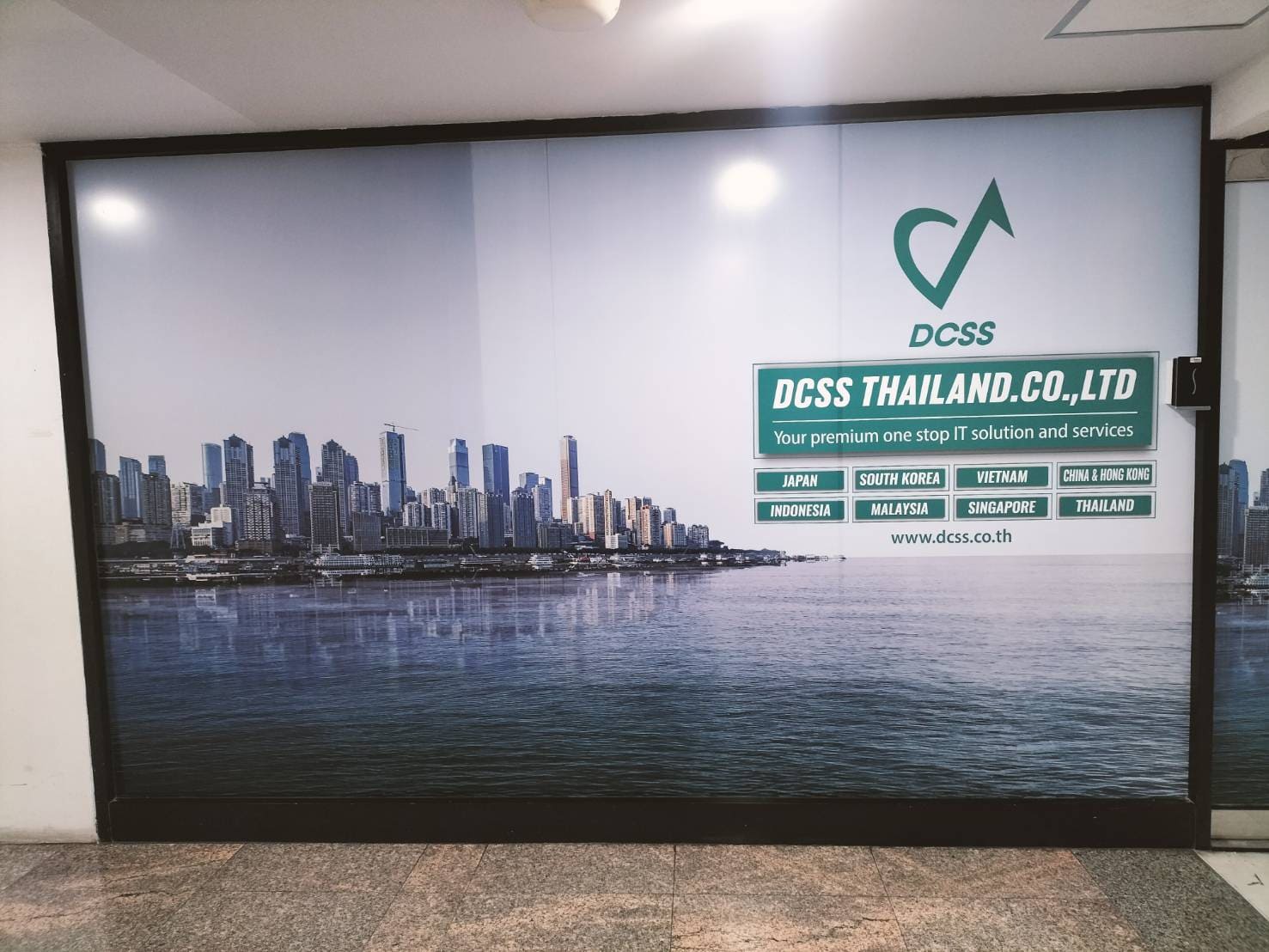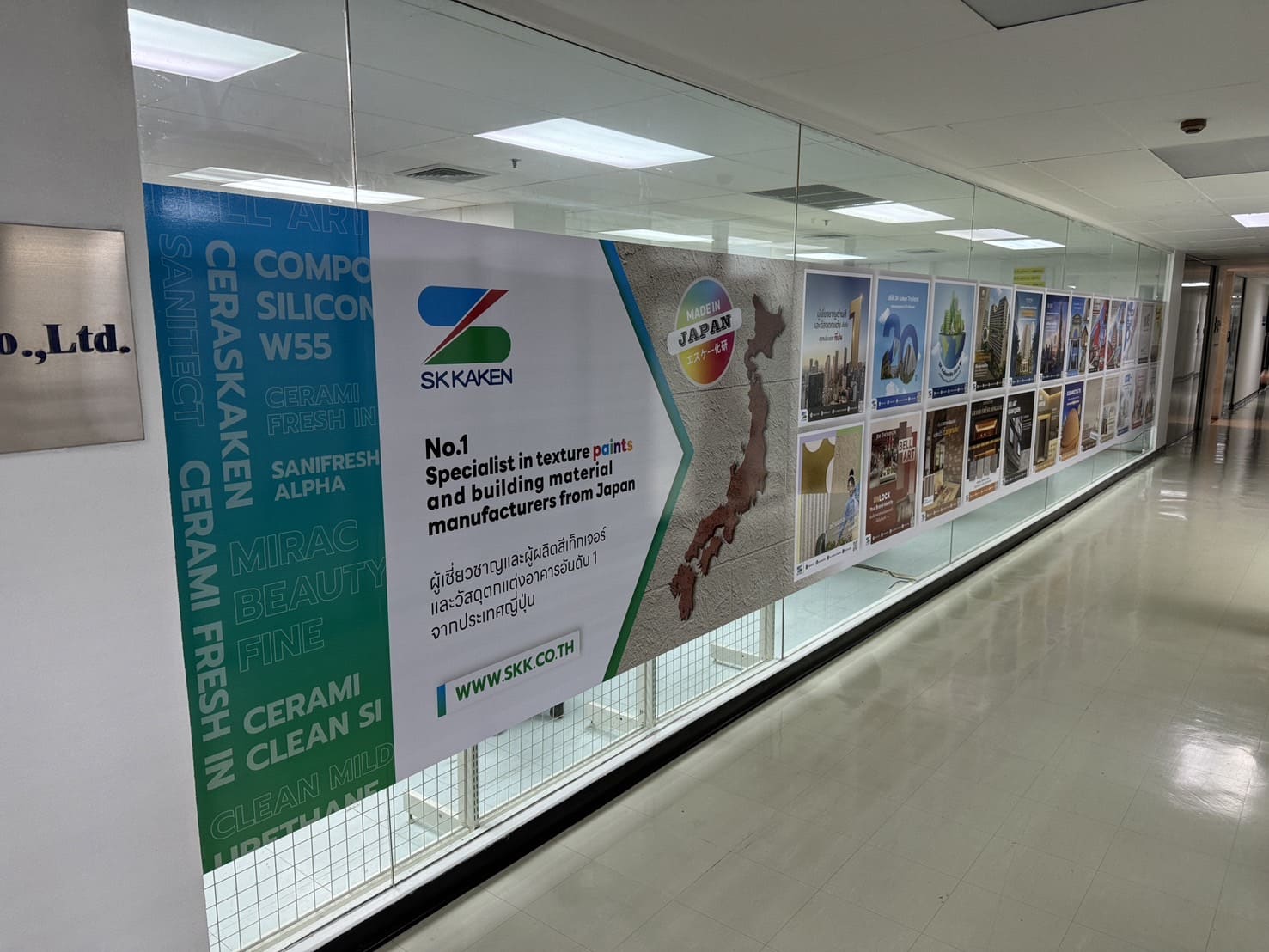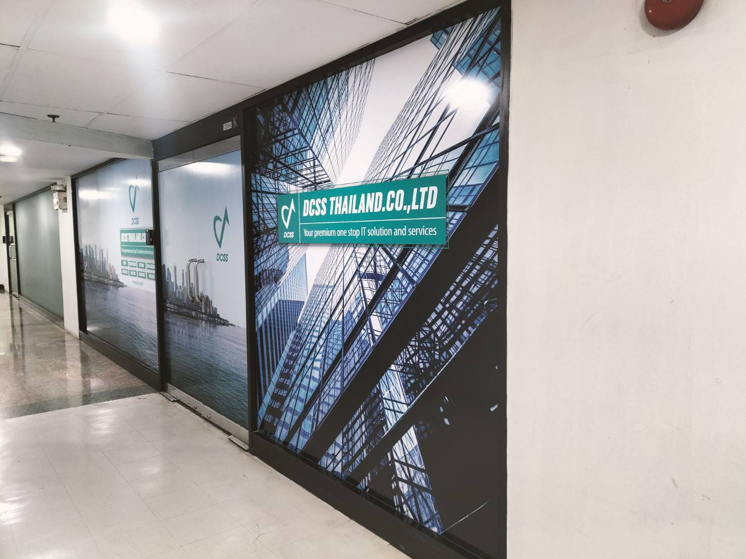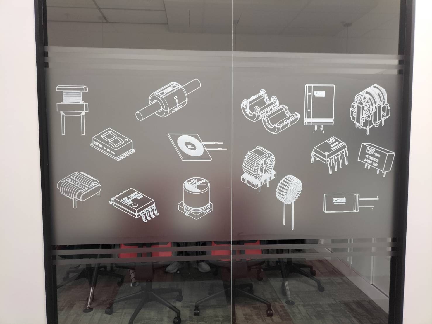 - สติ๊กเกอร์ฝ้า : เน้นความเป็นส่วนตัวและให้ความรู้สึกที่หรูหรา สามารถ พิมพ์สติ๊กเกอร์ฝ้าติดกระจก เพื่อเพิ่มลวดลาย หรือทำเป็นแถบสำหรับป้องกันการเดินชนกระจกในพื้นที่สำนักงาน